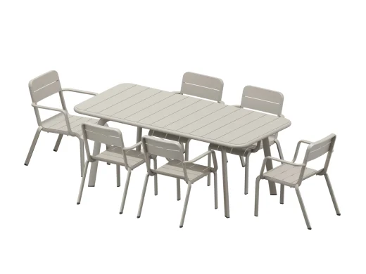 Set masă dreptunghiulară și 6 scaune cu cotiere