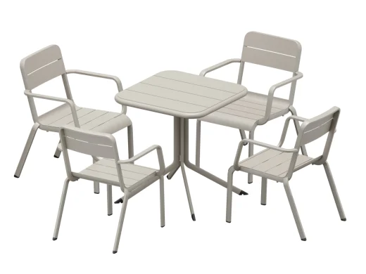 Set masă pătrată și 4 scaune cu cotiere