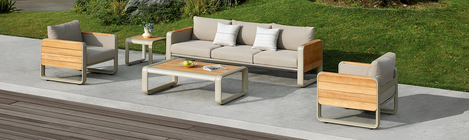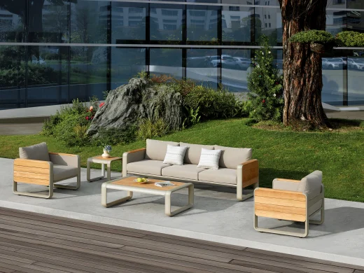 Set mobilier grădină și terasă, canapea 3 locuri, 2 fotolii și măsuță de cafea