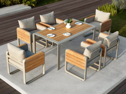 Set masă dreptunghiulară și 6 scaune cu cotiere