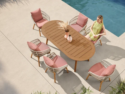 Set mobilier grădină și terasă canapea 2 locuri, 2 fotolii și măsuță de cafea