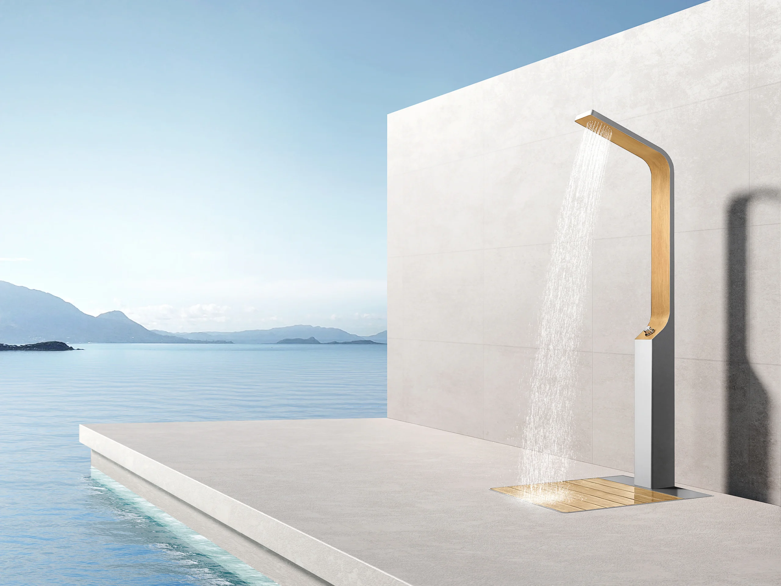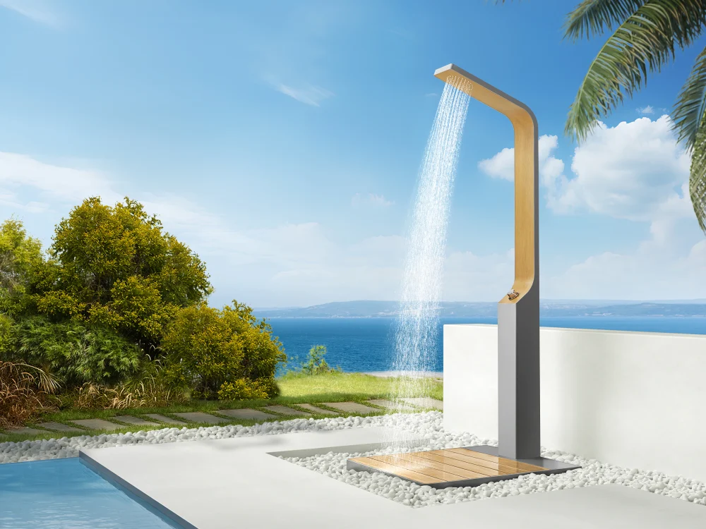 Dusul pentru exterior BLADE este un produs de dus care poate fi utilizat in spatii exterioare pentru o perioada lunga de timp. Poate fi folosit pentru curatarea corpului, sportind confortul si curatenia activitatilor in aer liber. Este conceput pentru a fi practic si atractiv din punct de vedere vizual pentru spatiile exterioare. Datorita designului sau unic, a liniilor fluide combinate cu metal durabil, rezistent la intemperii si lemnul de tec, acest design de dus exterior nu numai ca ofera functionalitate, dar serveste si ca o piesa de arta remarcabila, invitand utilizatorii sa se conecteze cu natura in timp ce se bucura de o experienta de baie luxoasa.
