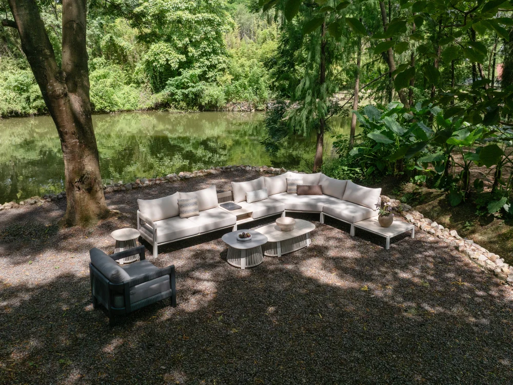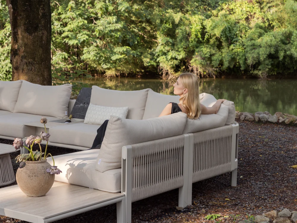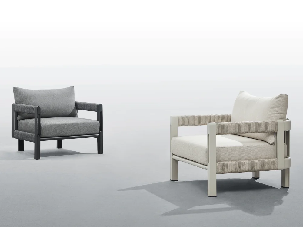 Cardul pieselor de mobilier Paros este realizat din aluminiu. La fabricarea cadrului s-a folosit sudura ascunsa, pentru a crea o rama metalica impletita, oferind un aspect moale si linii curate si fluide. Cotierele si spatarul sunt prevazute cu curele rotunde cu sucare rapida, cu miez impermeabil. Aspectul este neted si rotunjit, fara muchii ascutite.