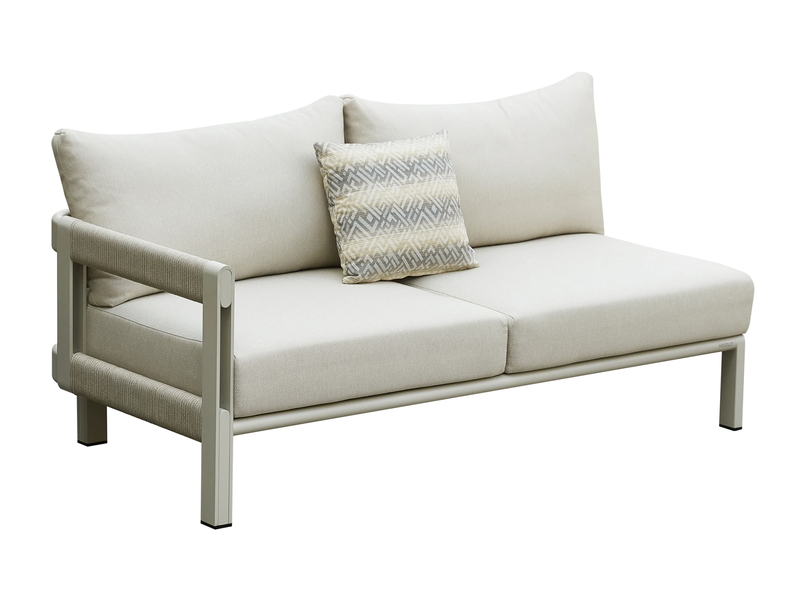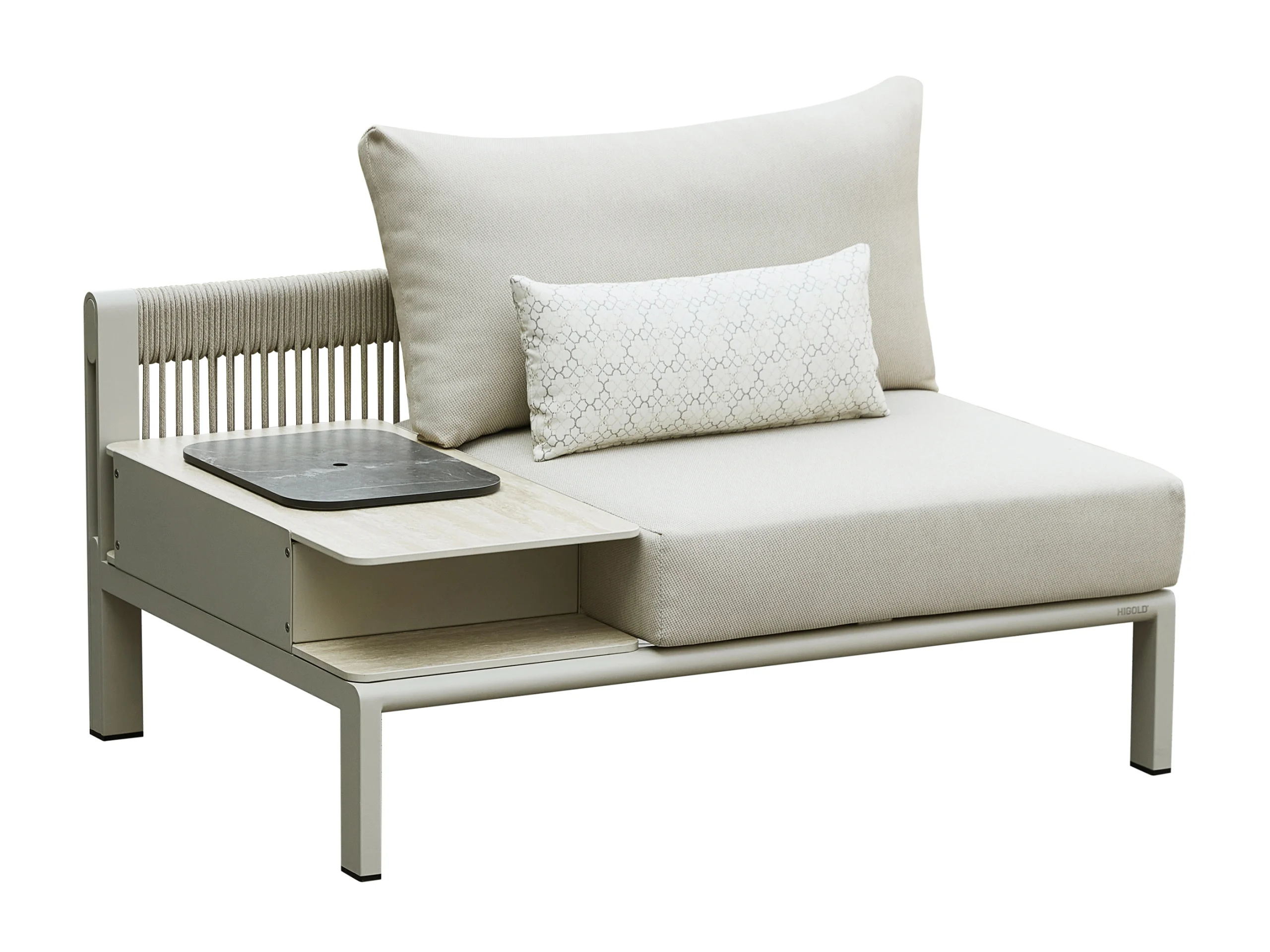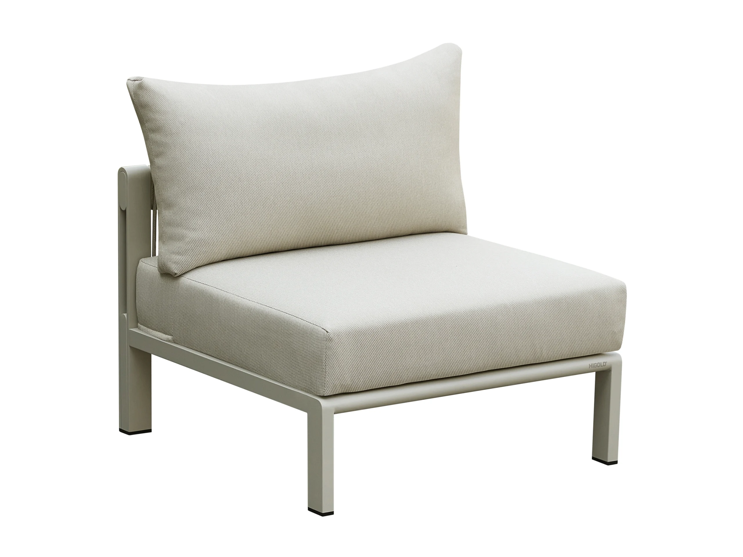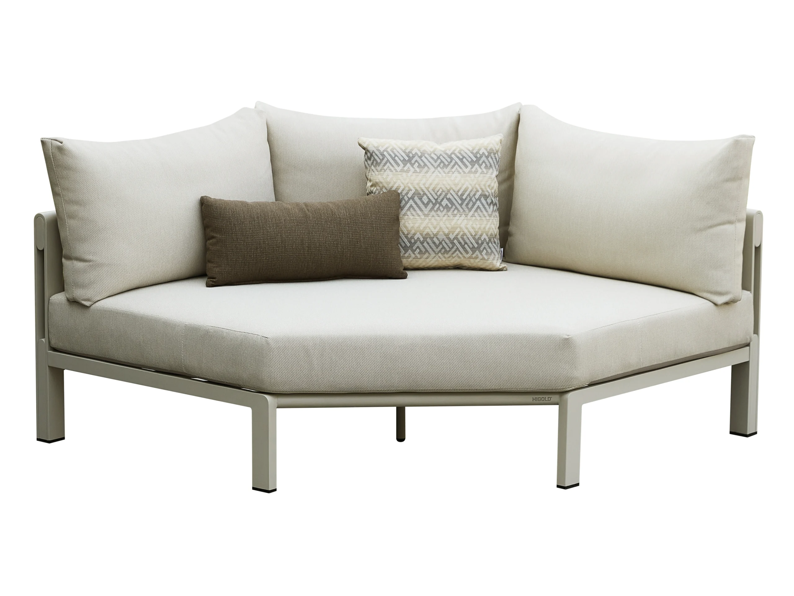 Perna sezutului este fabricata din spuma de densitate inalta si rezistenta ridicata, oferind atat confort, cat si sustinere. Perna spatarului este umpluta cu bumbac fin, fara presiune, care ofera o senzatie moale si imbratisatoare atunci cand va relaxati. Husele pernelor sunt realizate din olefin – un material ecologic, rezistent si impermeabil. Pernele sunt dehusabile, si husele pot fi spalate si la masina de spalat rufe, la temperaturi joase. Designul oversized al pernelor ofera confort suplimentar. Pernele de sezut sunt cu aproximativ 15% mai late si mai adanci decat modelele strandard Higold.