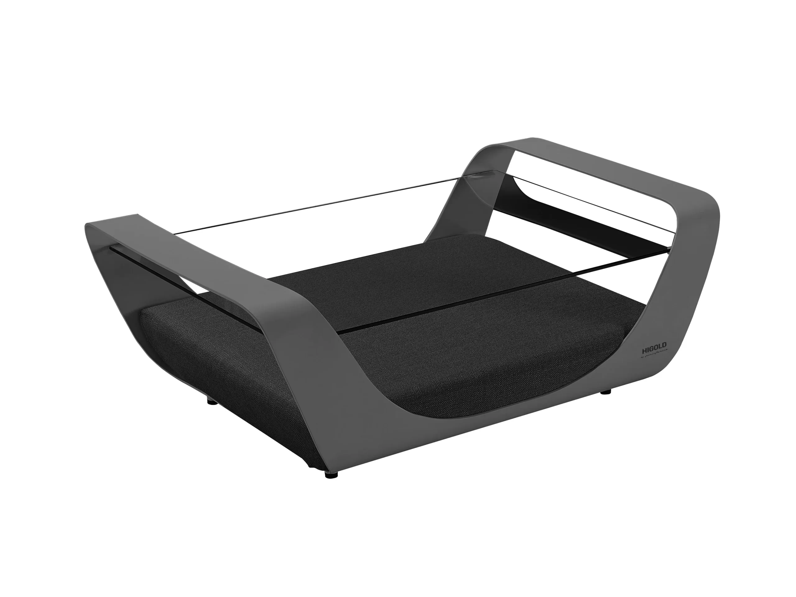 Colectia Onda by Pinifarina se distinge in primul rand printr-un cadru de mobilier durabil fabricat din aluminiu, care este completat de perne confortabile si o cotiera rigida cu un compartiment special pentru obiecte mici. Materialele utilizate au fost preluate din experienta marcii Pinifarina in designul automobilelor de sport si iahturilor de lux. Setul Higold Onda este format din multiple elemente modulare: canapea din mijloc cu spatar inalt, canapea din coltul stang cu cotiera si spatar inalt, canapea centrala cu spatar inalt, canapea din coltul din dreapta cu cotiera si spatar, precum si o masuta de cafea cu blat din sticla transparenta.