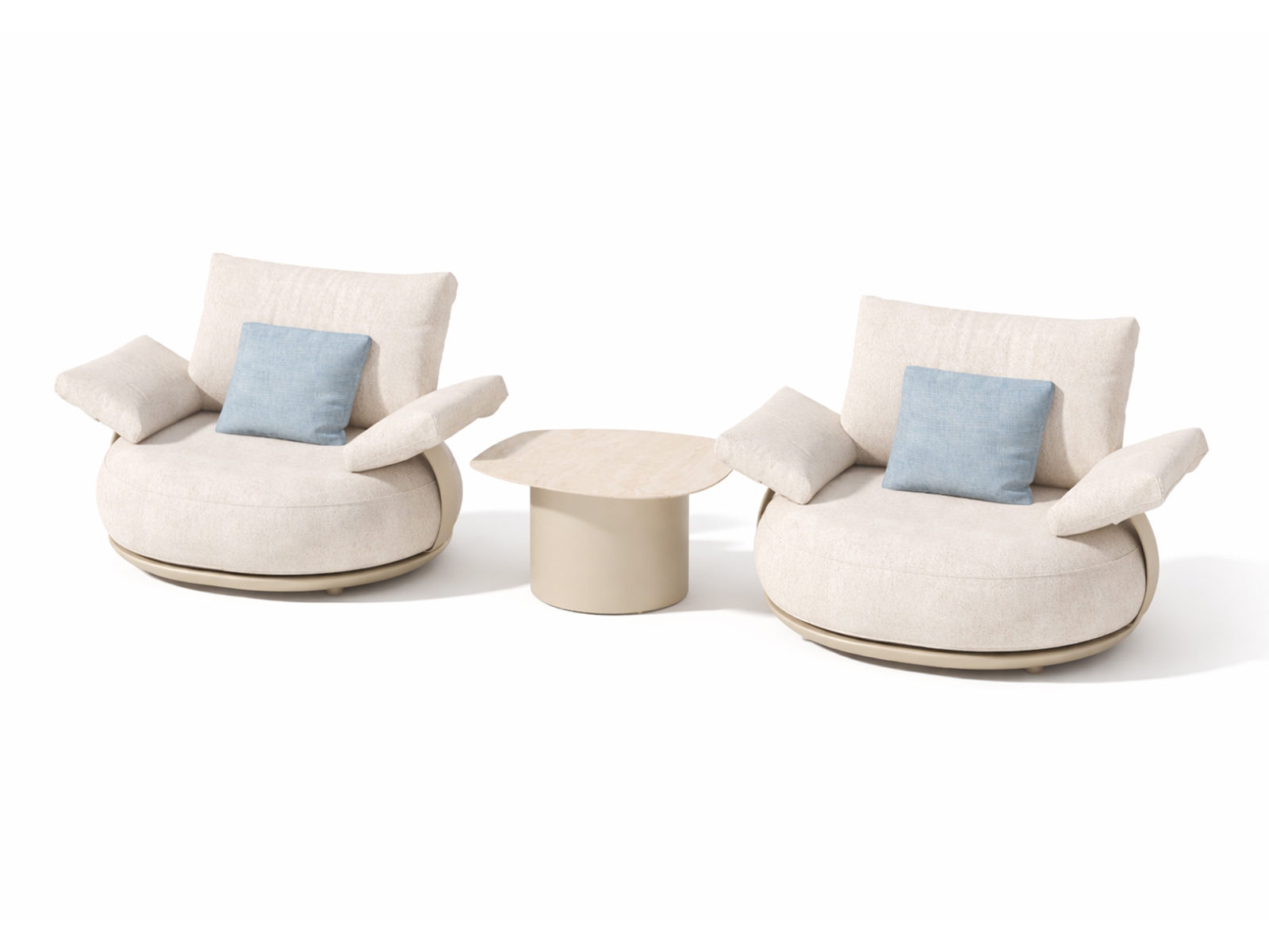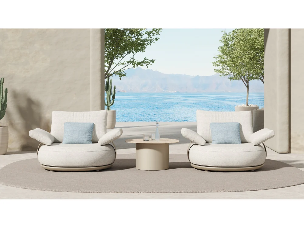 Piesele rafinate din colectia Calla sunt perfecte atat pentru uz professional, cat si privat in aer liber, datorita cadrului metalic durabil si pernelor generoase si pufoase, care ofera un confort exceptional la sedere. Designul organic faciliteaza adaptarea fiecarei amenajari la spatiul dumneavoastra exterior – de la un singur scaun primitor la un sistem lounge mai mare pentru divertisment. Pernele sunt fabricate din materiale durabile, rezistente la UV si murdarie, mentinandu-si moliciunea si aspectul sofisticat sezon dupa sezon.