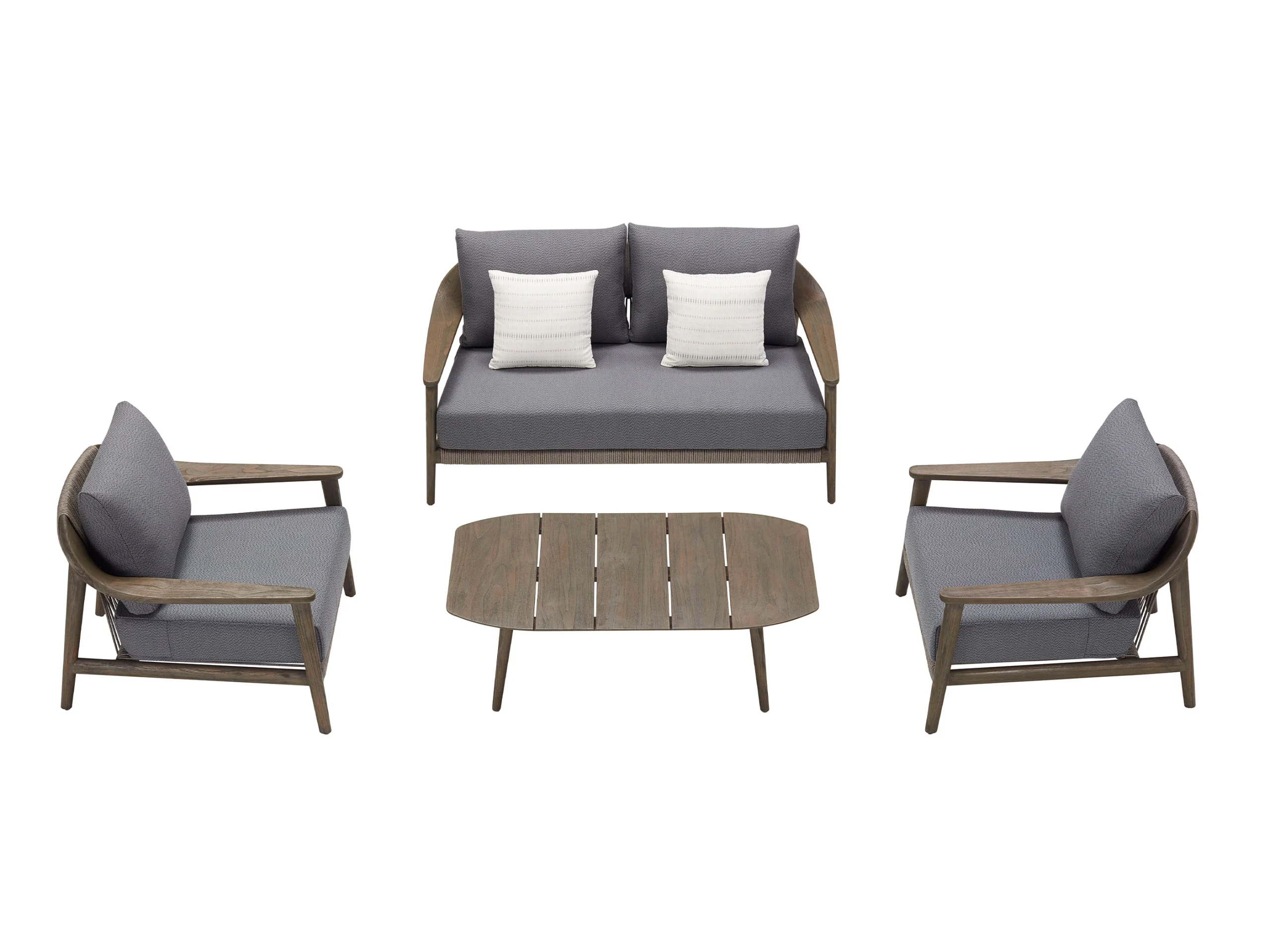 Higold® Leo Set mobilier grădină și terasă, canapea 2 locuri, 2 fotolii și măsuță de cafea GRI/NATUR