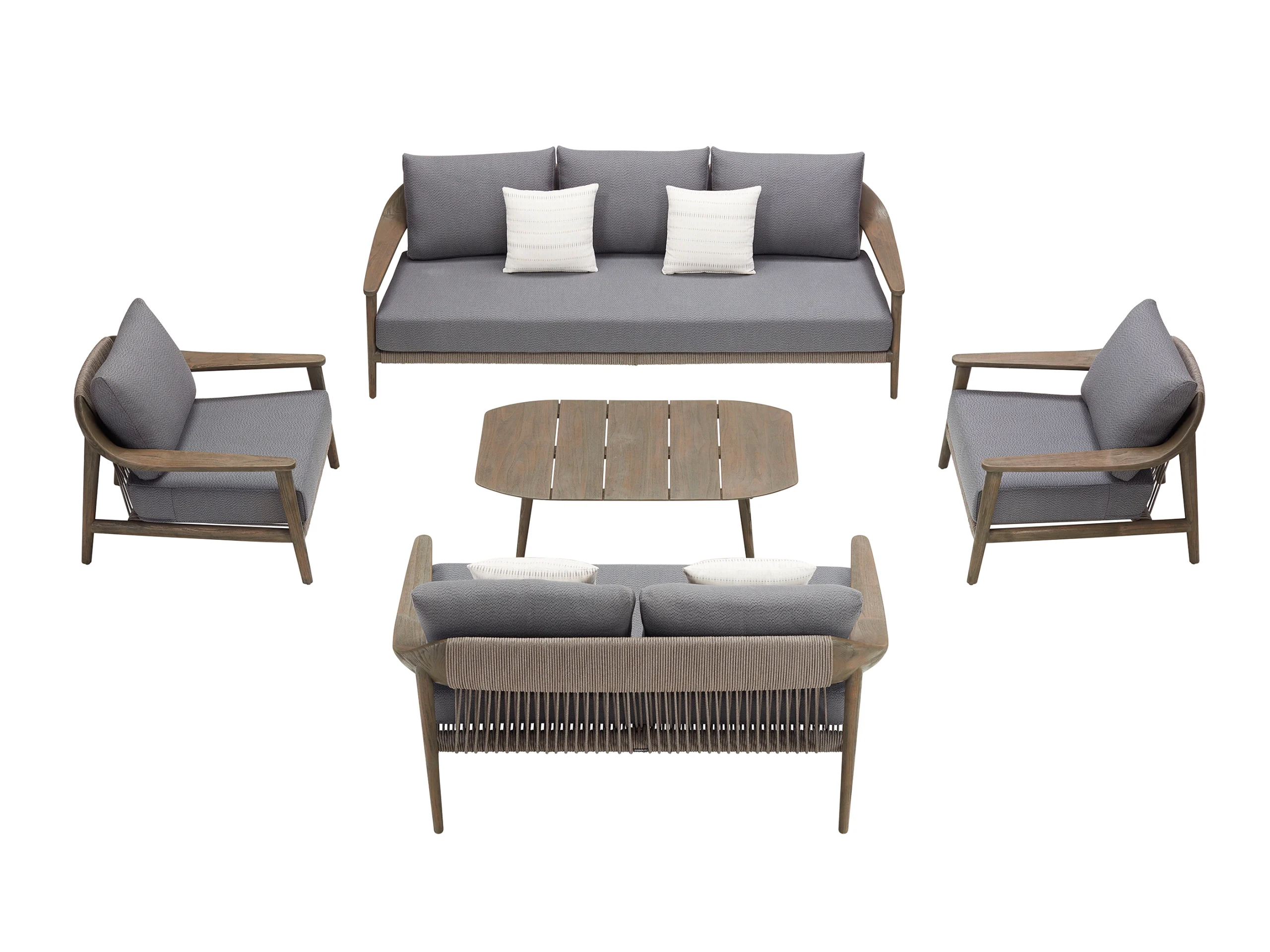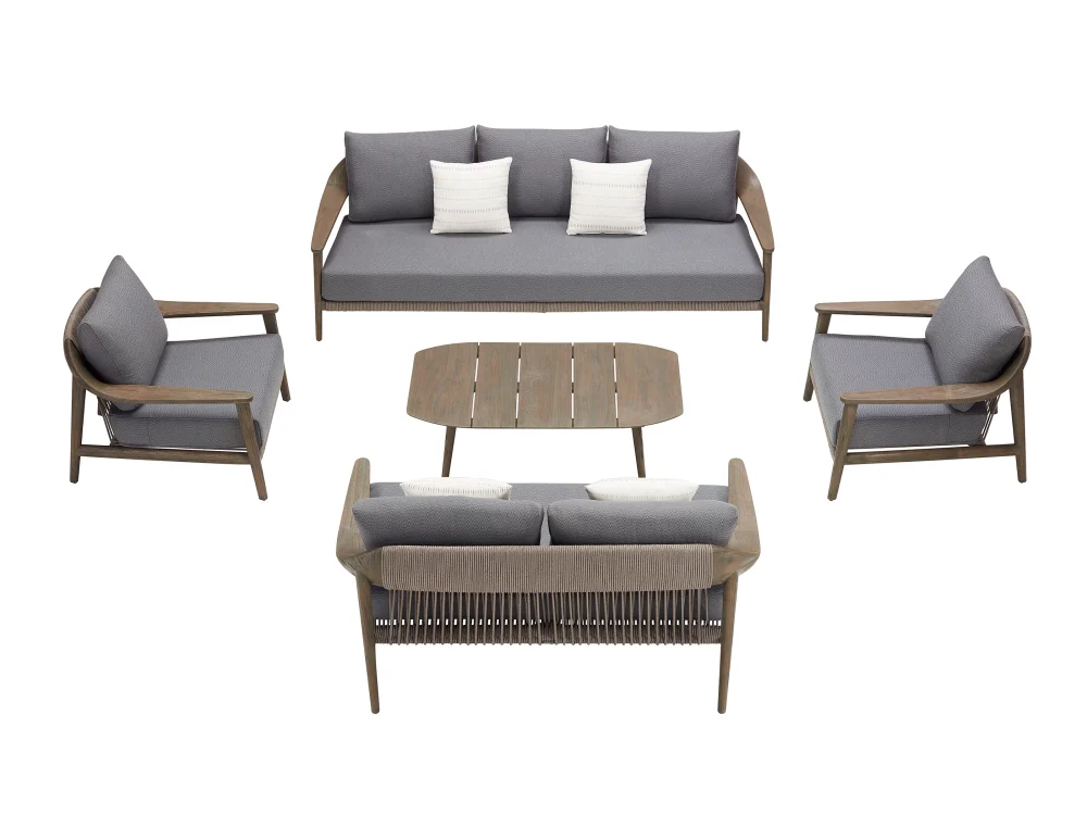 Setul de mobilier Higold Leo include o canapea cu trei locuri, o canapea de 2 locuri, doua fotolii si o masuta de cafea. Cadrul mobilierului este realizat din lemn de tec FSC de calitate superioara, cu aspect frumos. Sezutul pieselor din aceasta colectie este unul deosebit de gros si confortabil. Toate pernele de sezut si spatar sunt prevazute cu huse din material acrilic de calitate superioara, rezistente si placute la atingere.