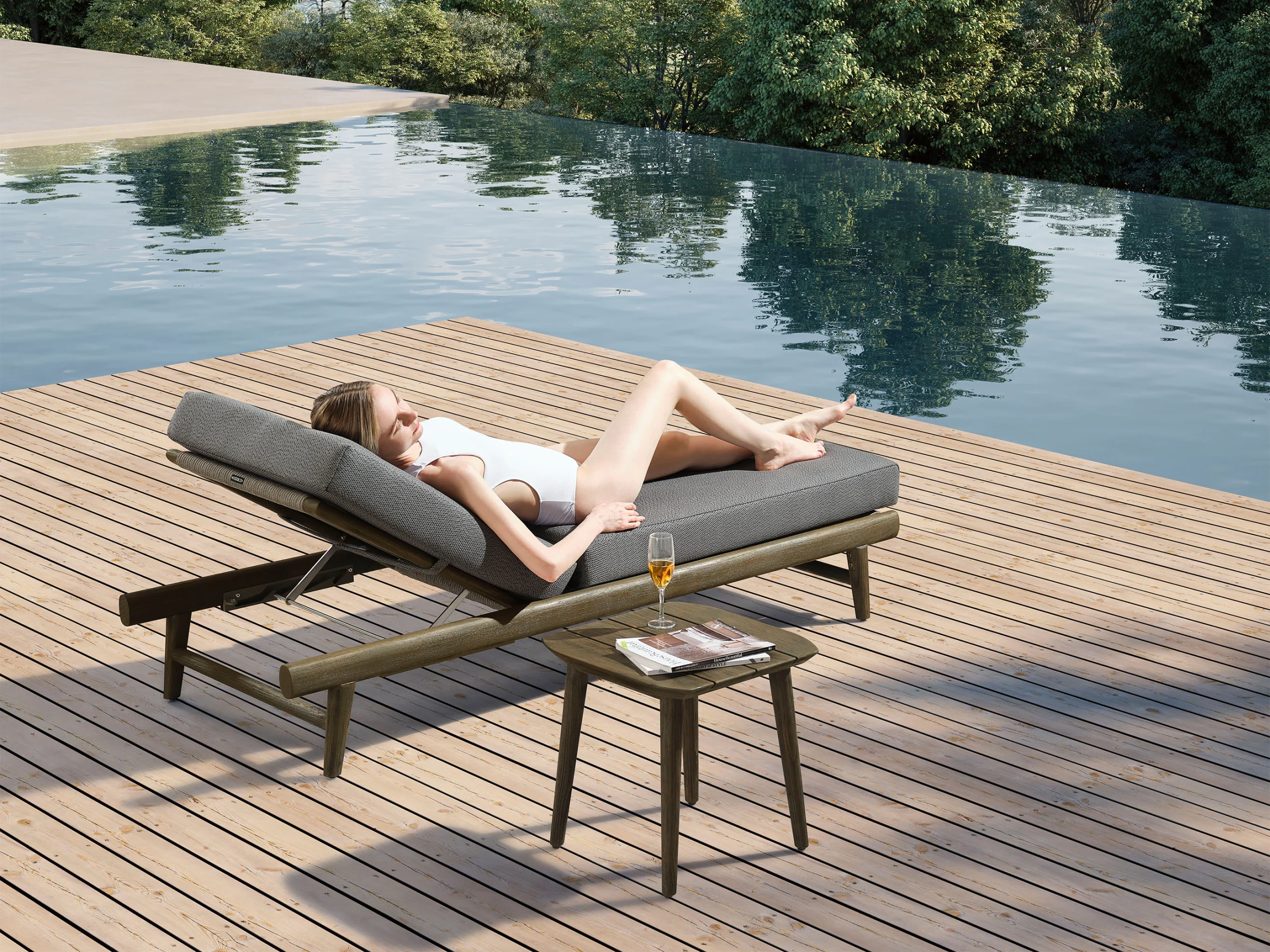 Setul include un sezlong si o masuta auxiliara de cafea. Cadrul mobilierului este realizat din lemn de tec FSC de calitate superioara, cu aspect frumos. Sezutul pieselor din aceasta colectie este unul deosebit de gros si confortabil. Toate pernele de sezut si spatar sunt prevazute cu huse din material acrilic de calitate superioara, rezistente si placute la atingere.